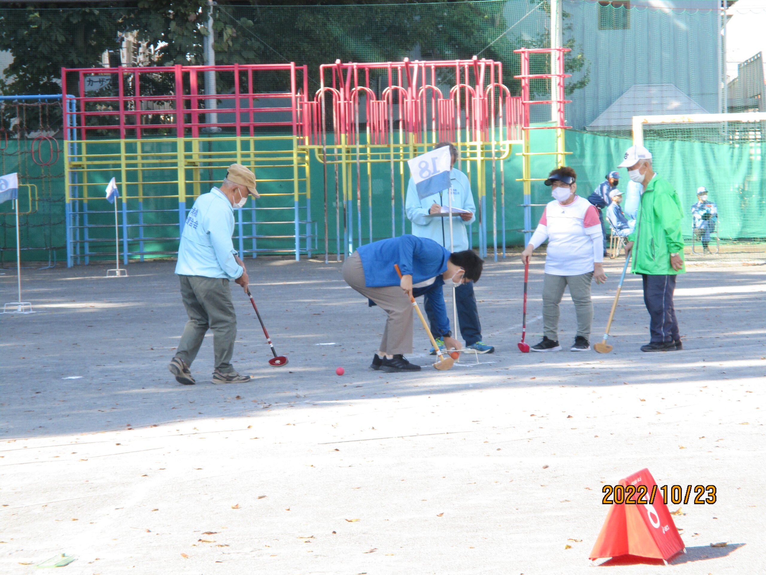 2022(令和4)年10月23日(日)、神橋小学校校庭で2022六角橋グラウンドゴルフ大会が開催され、小さい子どもからシニアまで大勢の方が参加しました。また、町会対抗では、南町が優勝を果たしました。