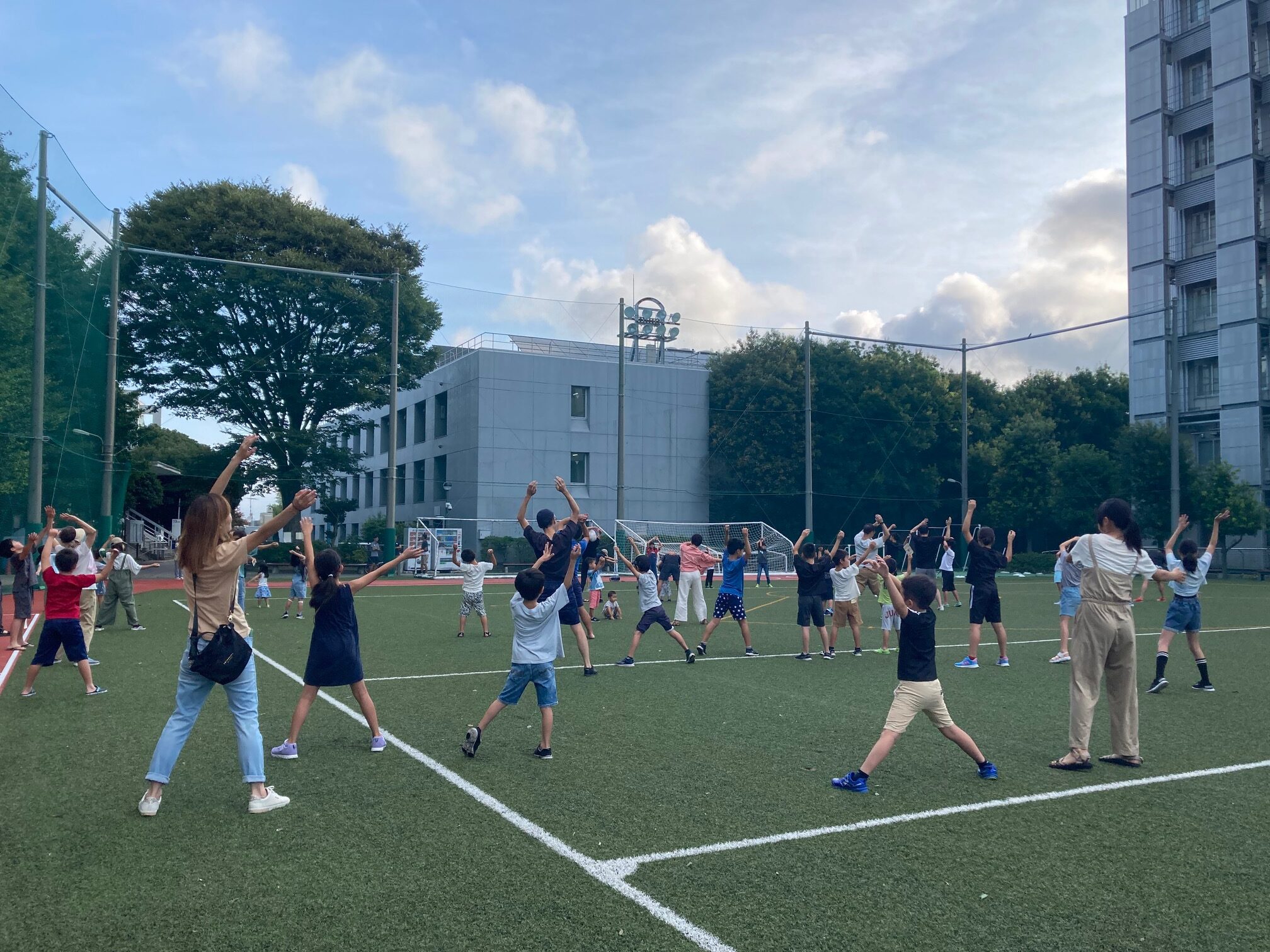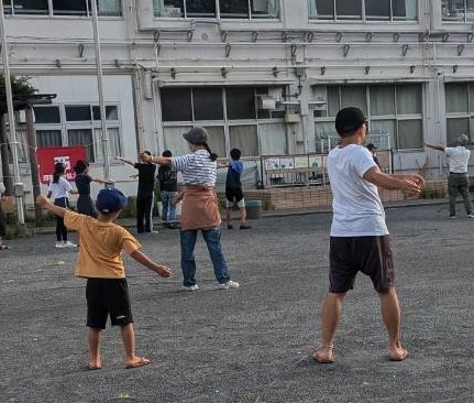 六角橋では、今年も神橋小学校会場と神奈川大学会場で早起きラジオ体操が行なわれ、地域の子どもから大人までたくさんの皆さんが参加しました。(主催 六角橋自治連合/地域交流滑動部)